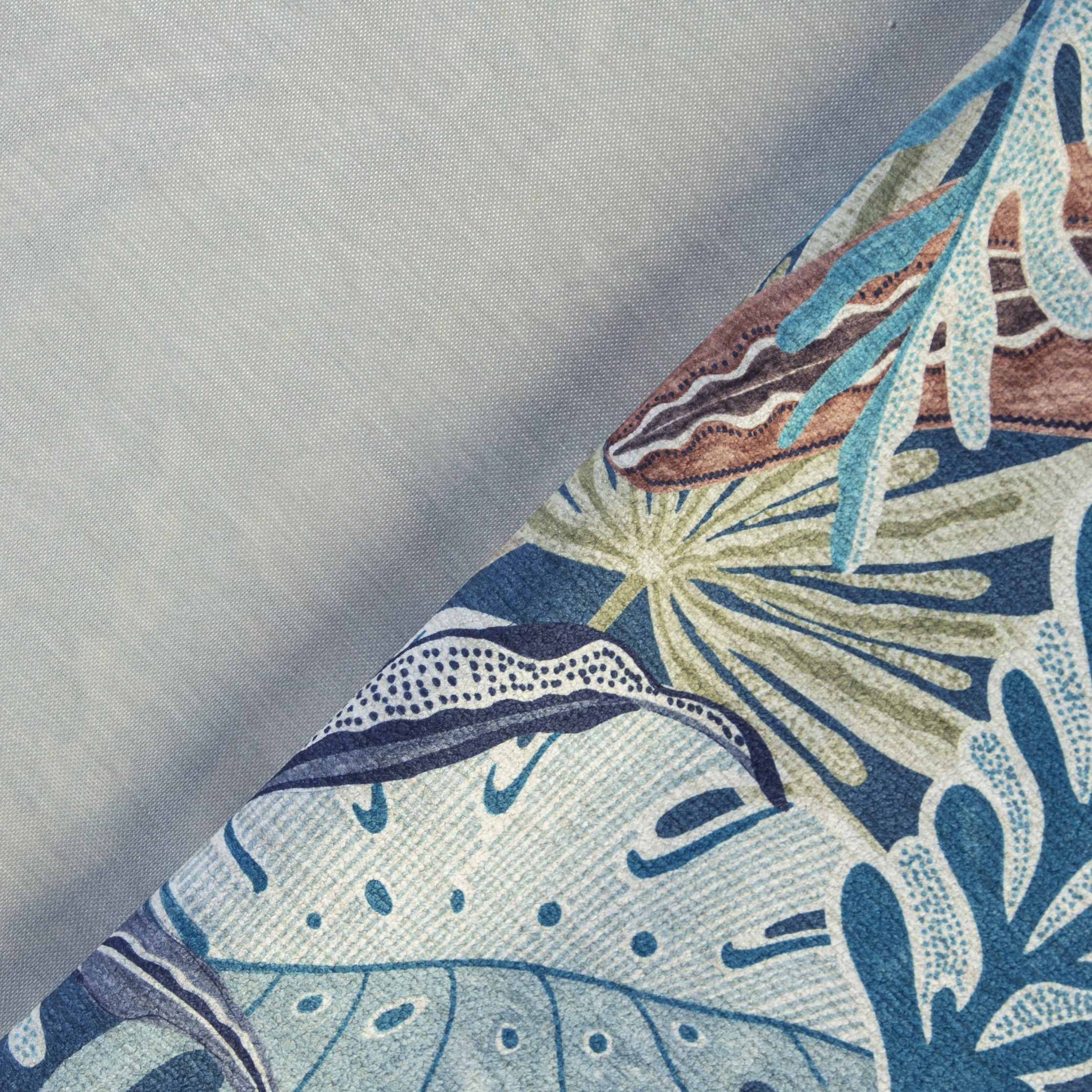Ross är ett slitstarkt möbeltyg i boucle som trycks med digitaltryck. På bilden ses ett exempeltryck.